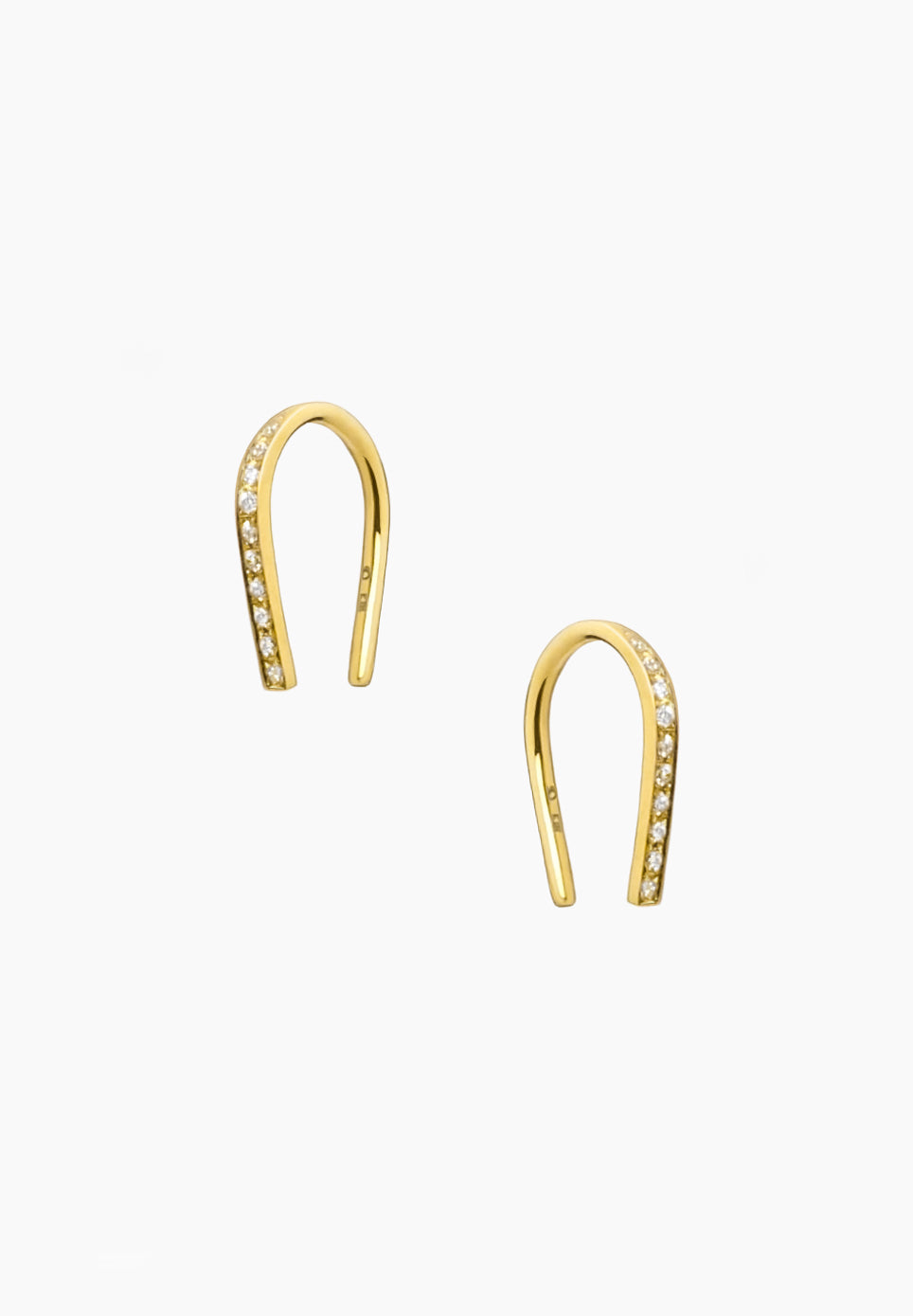 Une version des boucles d'oreilles "Spartacus", conçue avec un motif de sabot de cheval, comporte un petit diamant serti sur le côté qui est tourné vers l'avant lorsqu'on le porte. L'aspect digne du fer à cheval et sa silhouette simple et sophistiquée assurent une tenue suffisante rien qu'en le passant dans le trou de perçage du lobe de l'oreille. Il s'agit de l'élément minimaliste ultime qui peut créer subtilement une atmosphère luxueuse de K18 et de diamants.