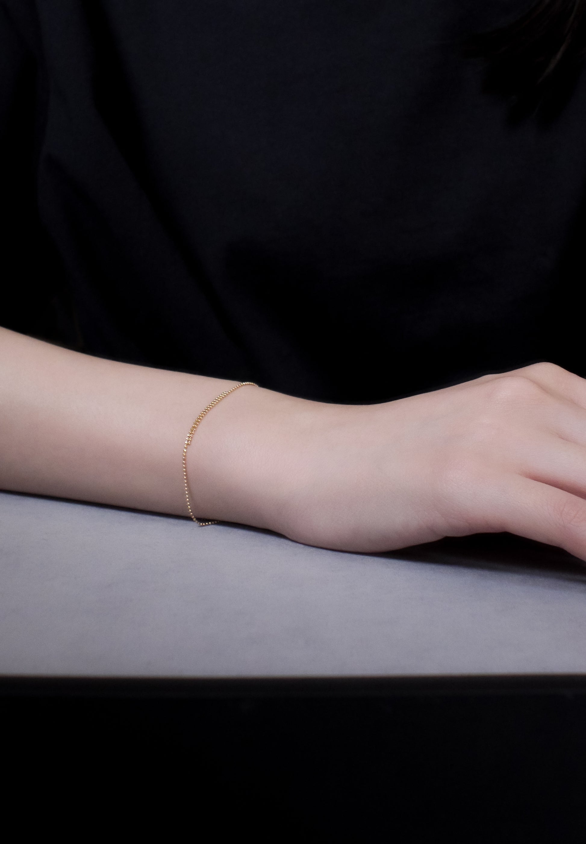 Des chaînes coupées en boule d'environ 1,0 mm se chevauchent et se connectent comme des pompons pour former une belle silhouette. De plus, en utilisant la technologie pour souder et durcir la chaîne à billes, nous avons obtenu un style complètement minimaliste qui élimine le gaspillage.