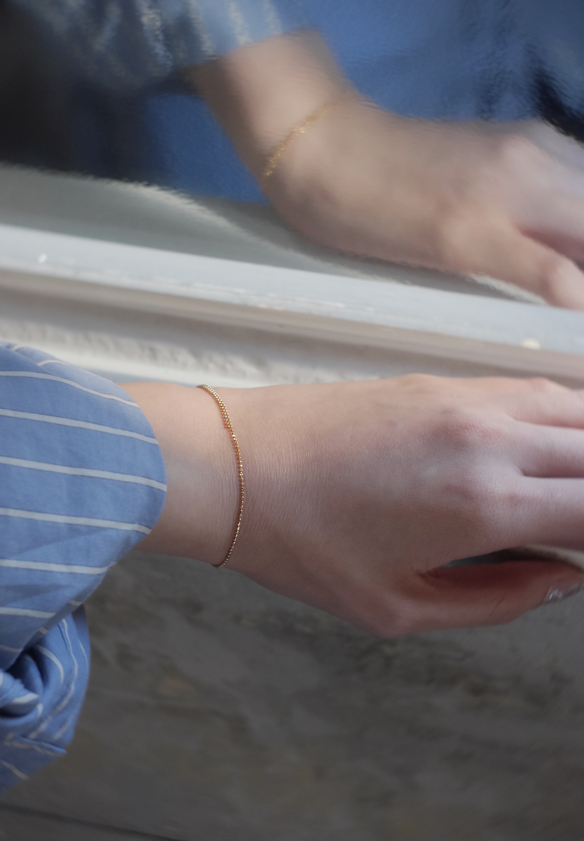 Le chevauchement correspond à deux chaînes partiellement superposées,Il s'agit d'un bracelet très minimaliste et décoré avec désinvolture.