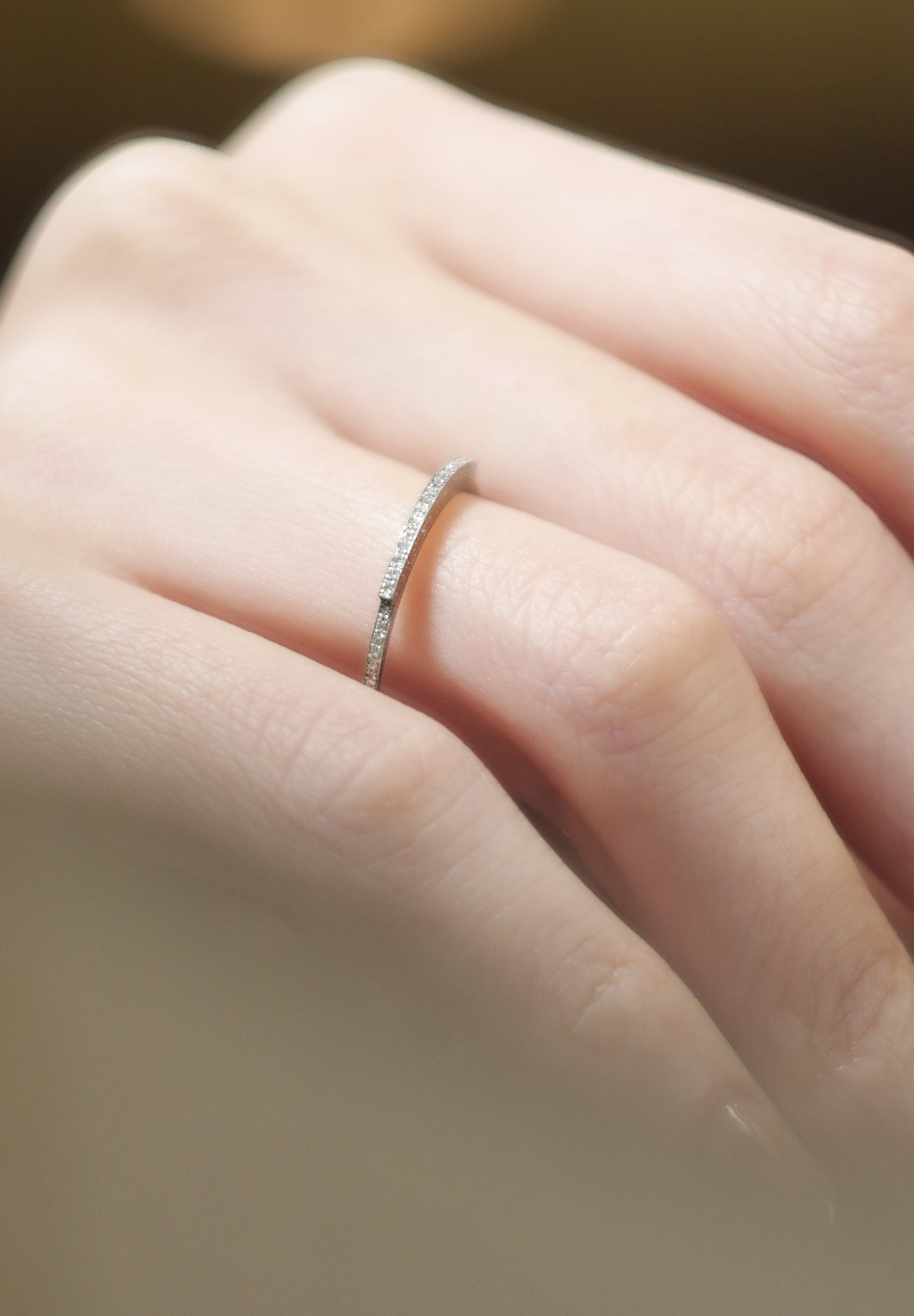 L'Eiger est l'un des sommets des Alpes et représente la Suisse.SHUN OKUBOLe créateur s'est inspiré de ses souvenirs d'enfance de visite dans les Alpes suisses. Le design, composé de deux couches de fil carré de 1,2 mm, rappelle les montagnes des Alpes. Cette bague est réalisée en fil de fer sans utiliser de moule et est réalisée une à une.SHUN OKUBOFabriqué à la main par nos ingénieurs. Il s'agit d'une bague demi-éternité avec des diamants de haute qualité soigneusement sélectionnés remplissant la moitié de la bague.