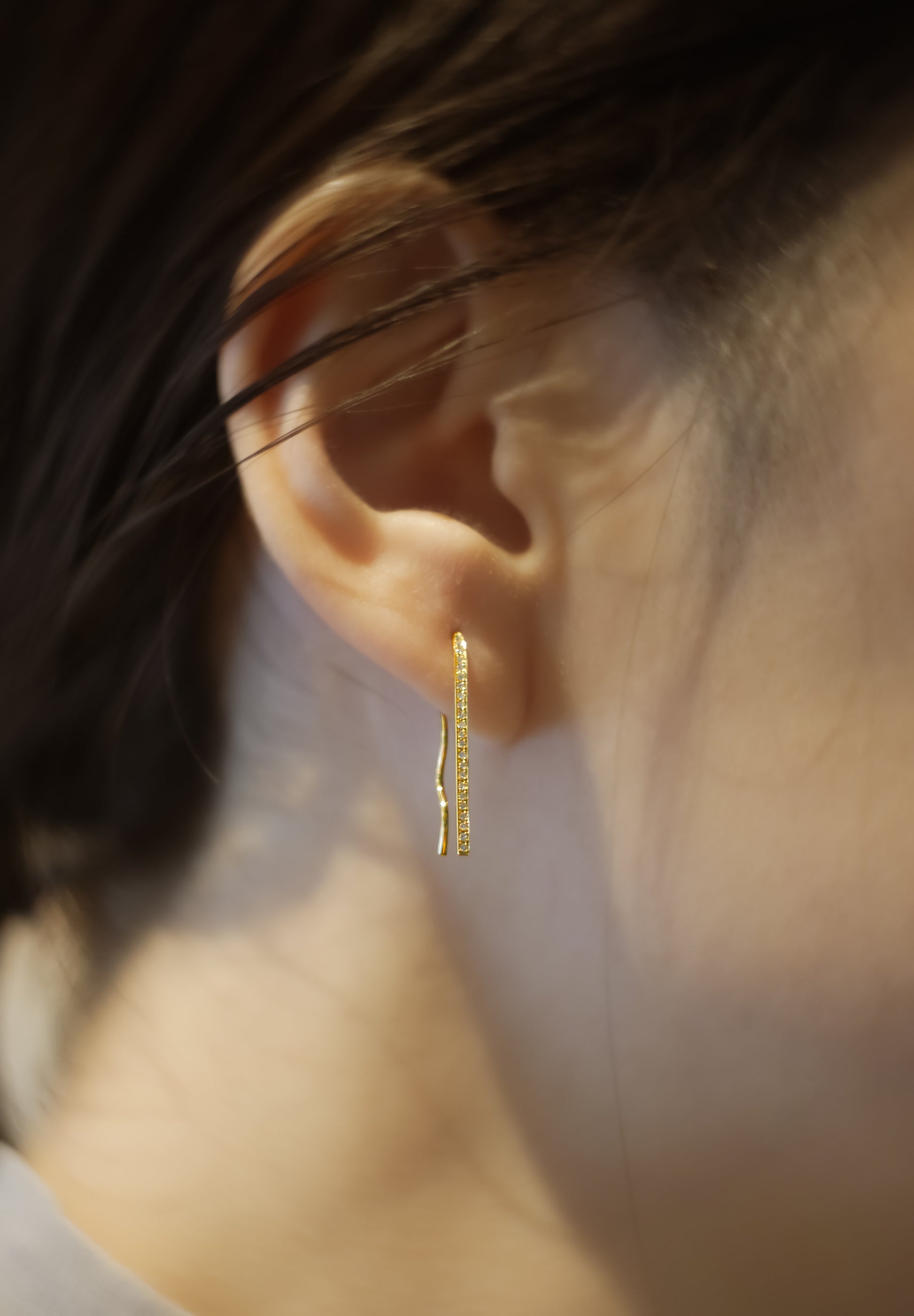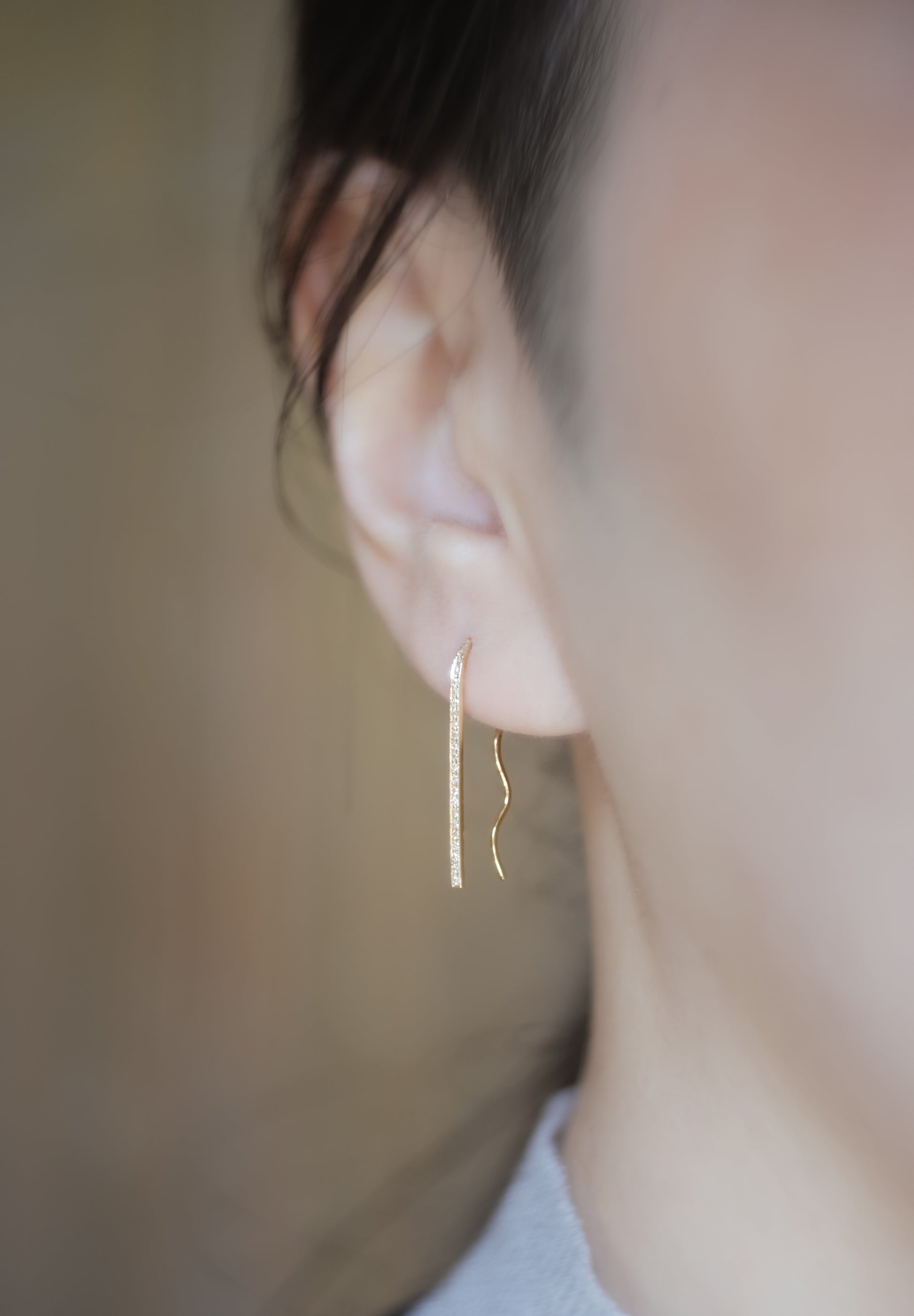 Les boucles d'oreilles "Le Lac des Cygnes" sont inspirées du ballet "Le Lac des Cygnes".Une version avec un petit diamant placé sur le côté tourné vers l'avant lorsqu'on le porte.. La forme de ces boucles d'oreilles s'inspire des épingles à cheveux et rappelle les ballerines et la façon dont elles portent les épingles à cheveux dans leurs cheveux. Les lignes ondulantes créent une belle ligne, et lorsqu'elle est portée à l'oreille, elle devient un accent avec encore plus de présence. Le K18 et les diamants dégagent un éclat luxueux et bien équilibré, que vous le portiez sur une oreille ou sur les deux oreilles.