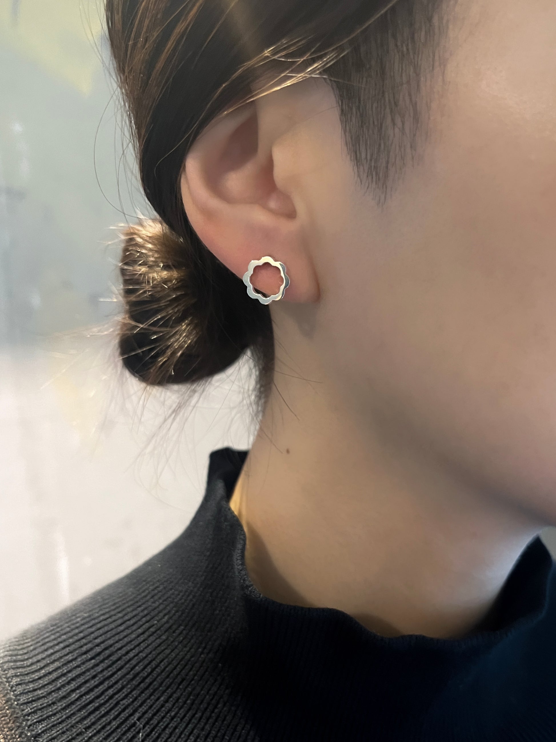 Boucles d'oreilles à motifs de fleurs. Le design s'inspire des peintures florales de l'artiste Cy Twombly. De plus, le sens esthétique occidental de la symétrie bilatérale, des lignes sans ambiguïté, ainsi que du poids et de la taille solides créent la beauté, la force et le luxe des fleurs.