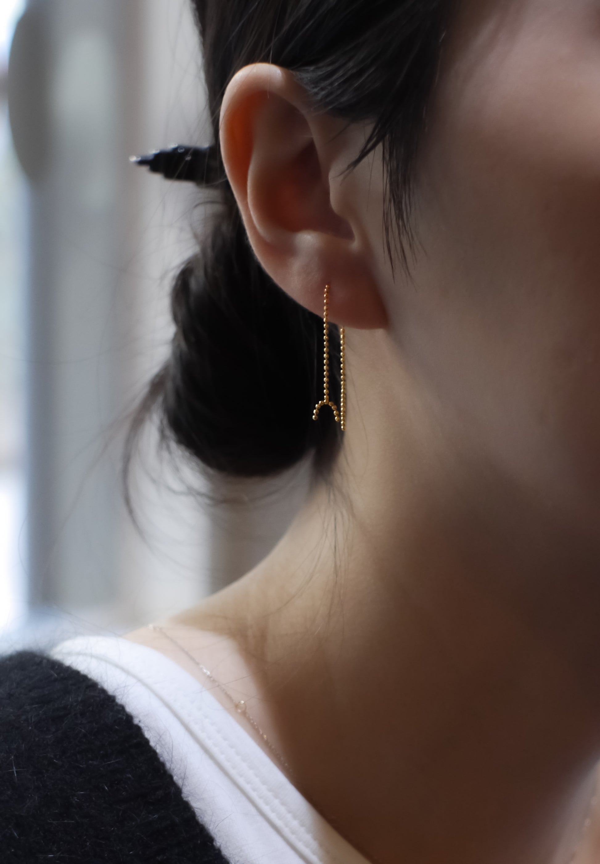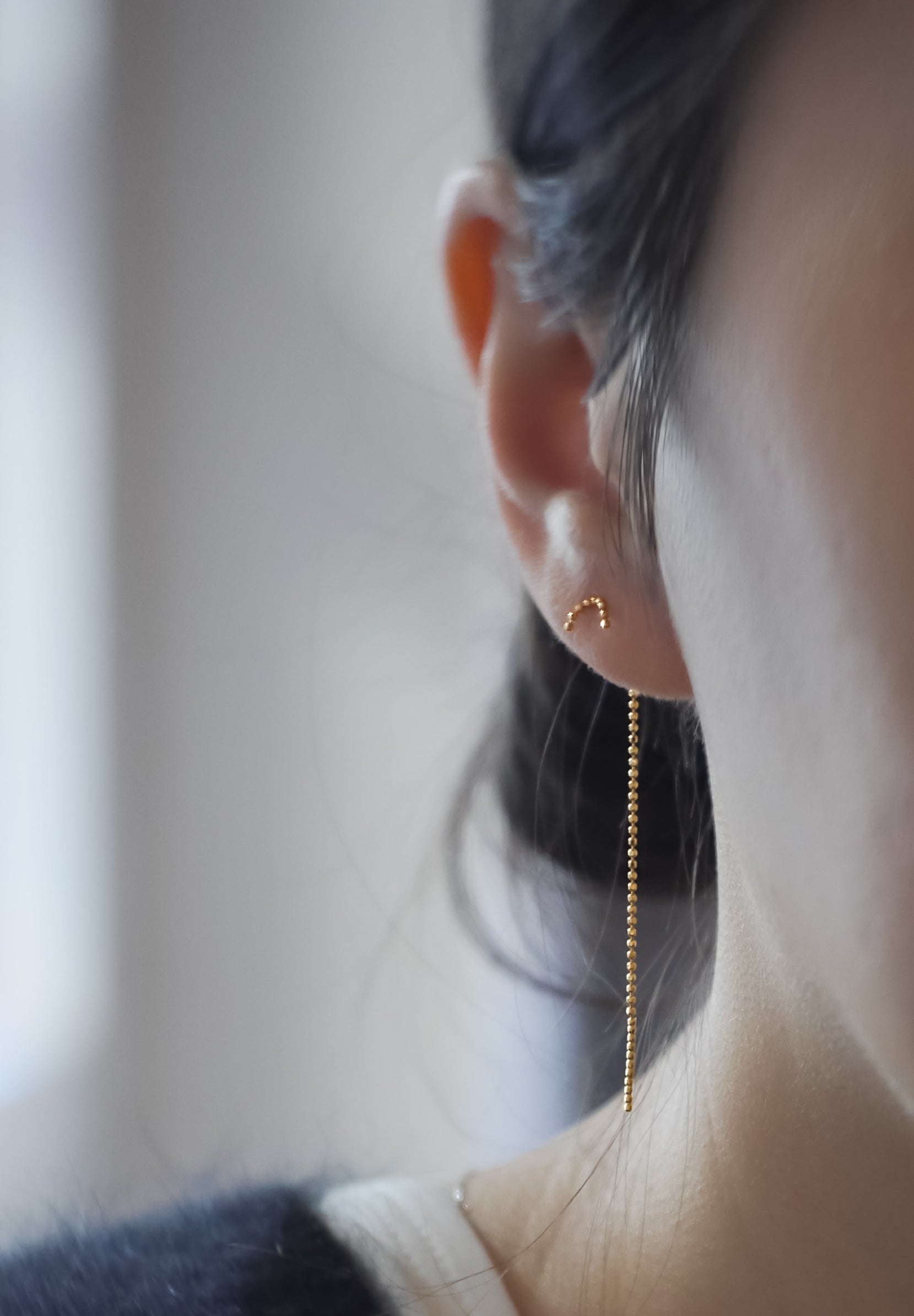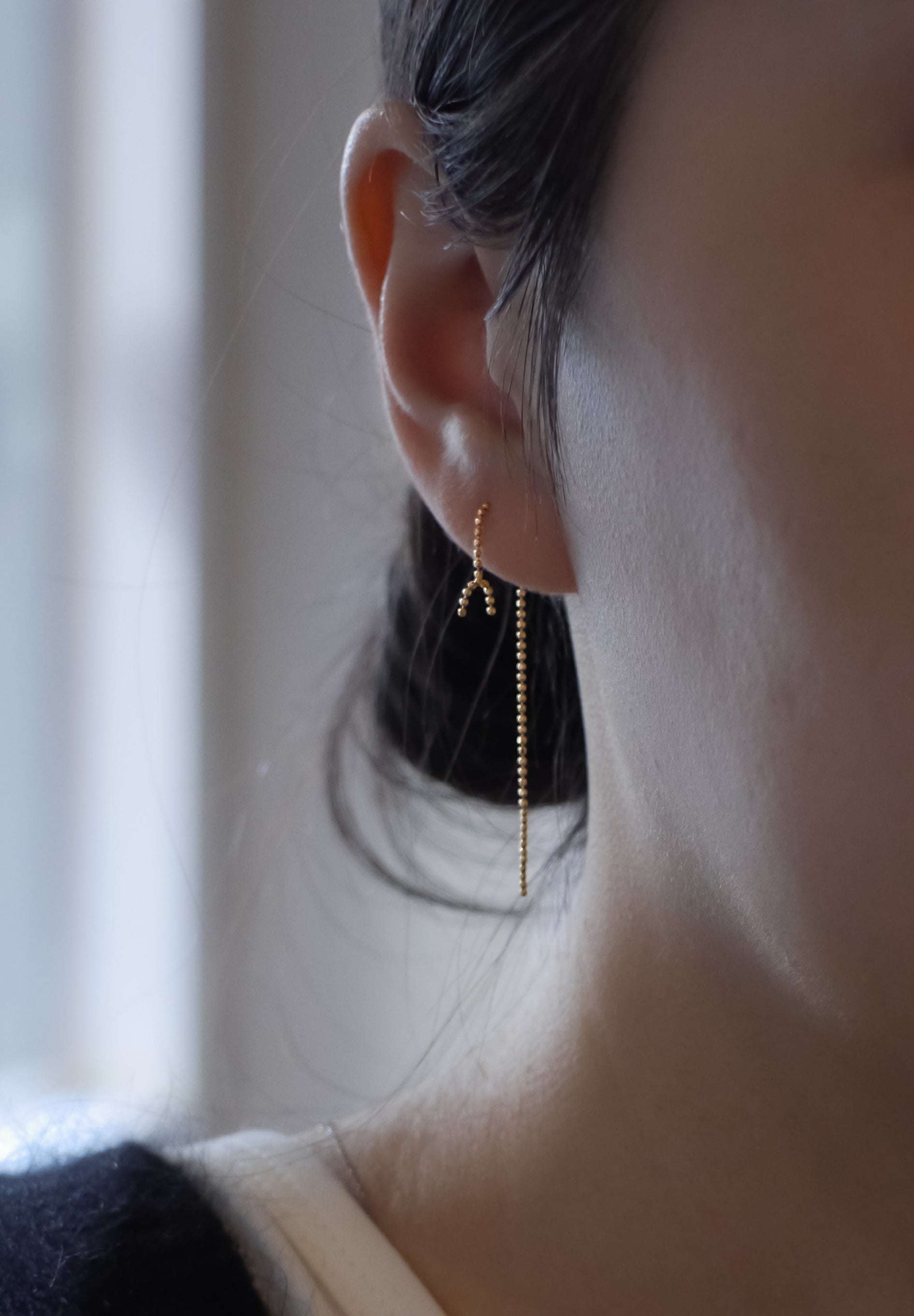 Vertical est une paire de boucles d'oreilles avec 9 chaînes boules disposées verticalement en haut pour une ambiance ennui.Non seulement elles peuvent être portées par paire, mais elles se marient également bien avec une coordination élégante avec des boucles d'oreilles qui ont un design différent sur chaque oreille.