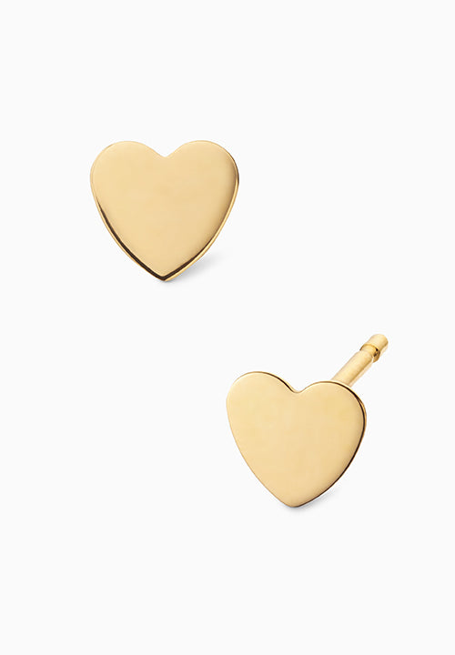Boucles d'oreilles simples avec une plaque coeur de 0,3mm, LAVIN'. Malgré sa taille modeste, cet article attire le regard par sa belle texture d'or jaune 18 carats et la beauté de son cœur.