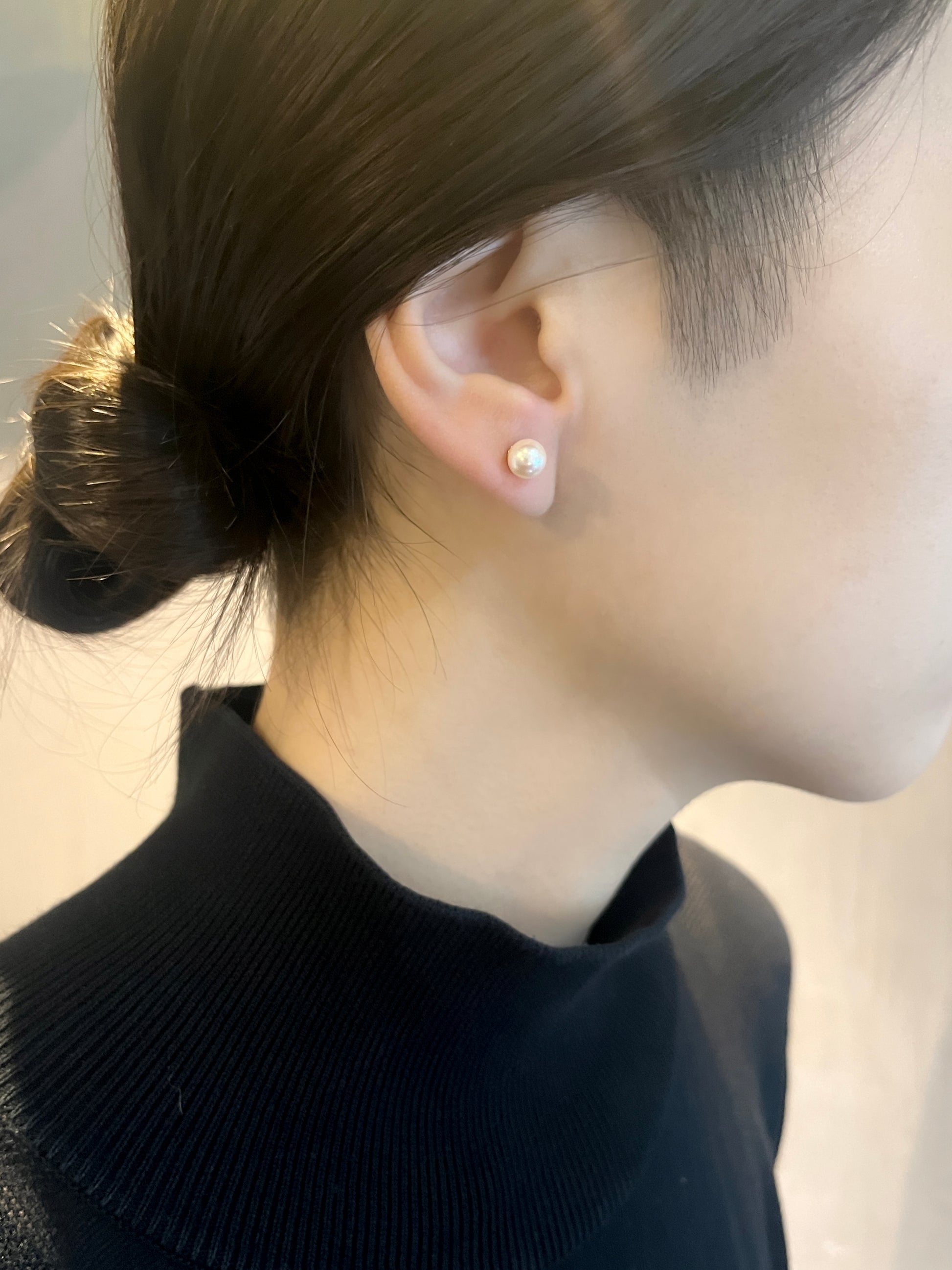 Piforce | AKOYA PEARL Φ6.0mm, or jaune 18 carats | Poteau : 10 mm Φ0,9 mm | Célibataire