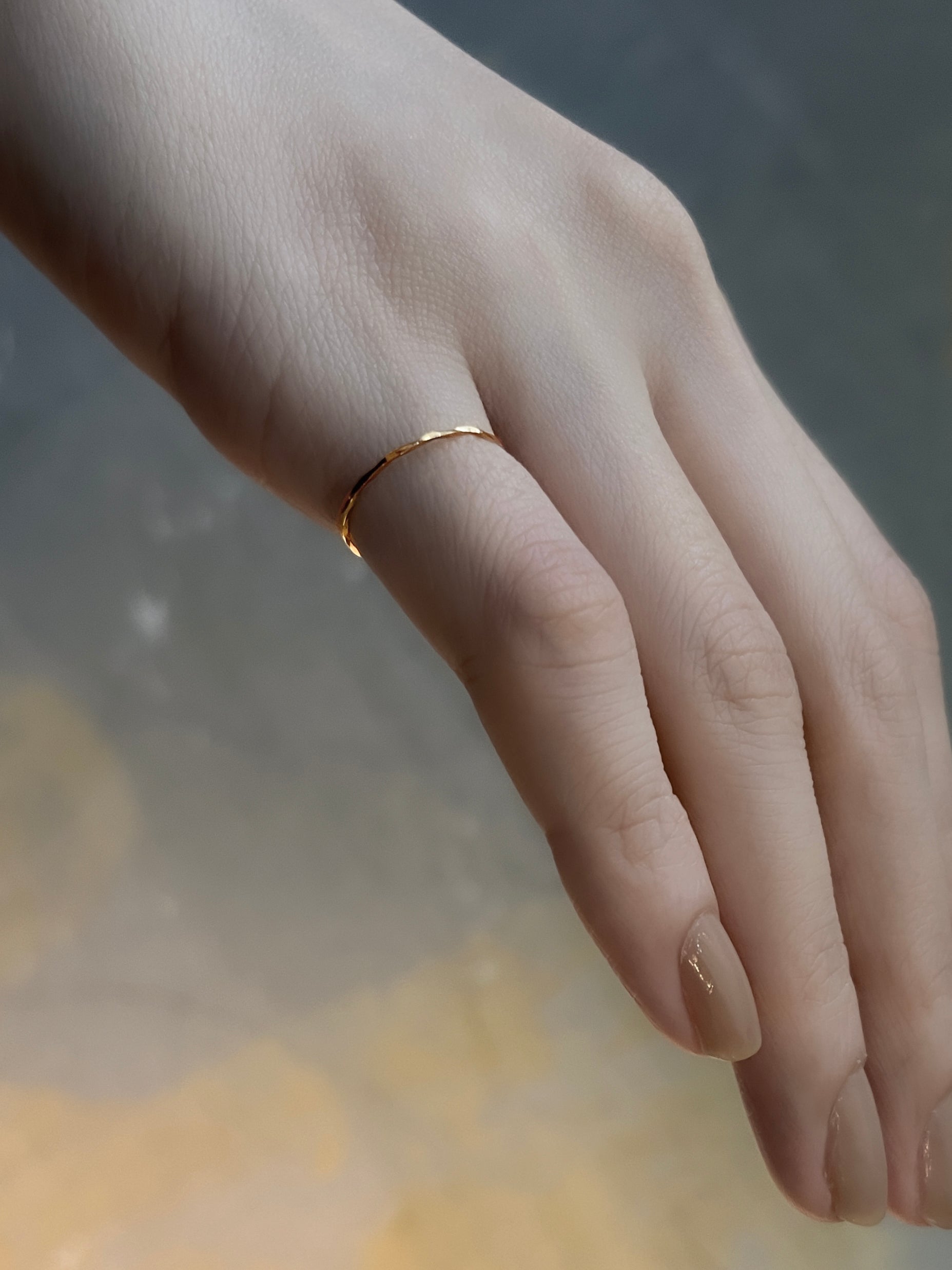 Pina est une bague réalisée en fil de 0,8 mm en or jaune 18 carats. Les lignes sont découpées et décorées. La silhouette délicate qui scintille est la bague la plus délicate parmi les articles SO. La forme minimale donne une impression nette et crée également une solide présence d’or. Vous pouvez créer une ligne dorée en l'appliquant sur plusieurs doigts, ou en la superposant sur un doigt, et profiter de diverses coordinations.