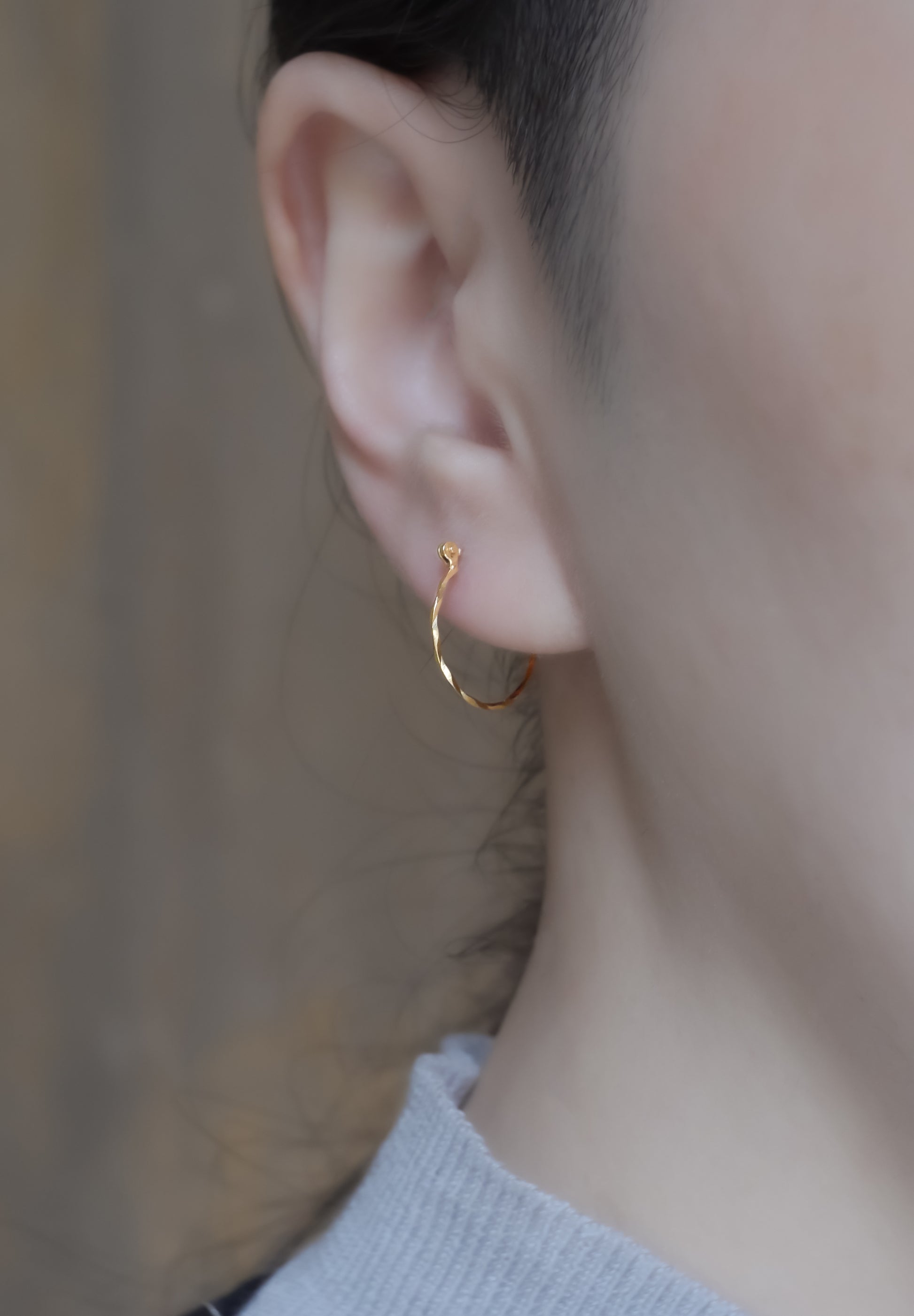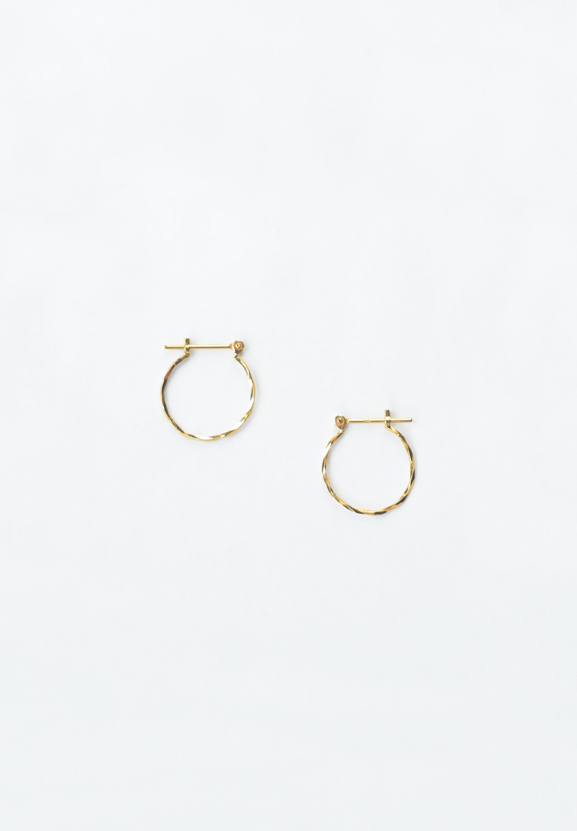 Boucles d'oreilles créoles composées de fil K18 d'environ 0,8 mm. Les lignes décorées de la coupe dégagent une lumière à la fois délicate et vive.