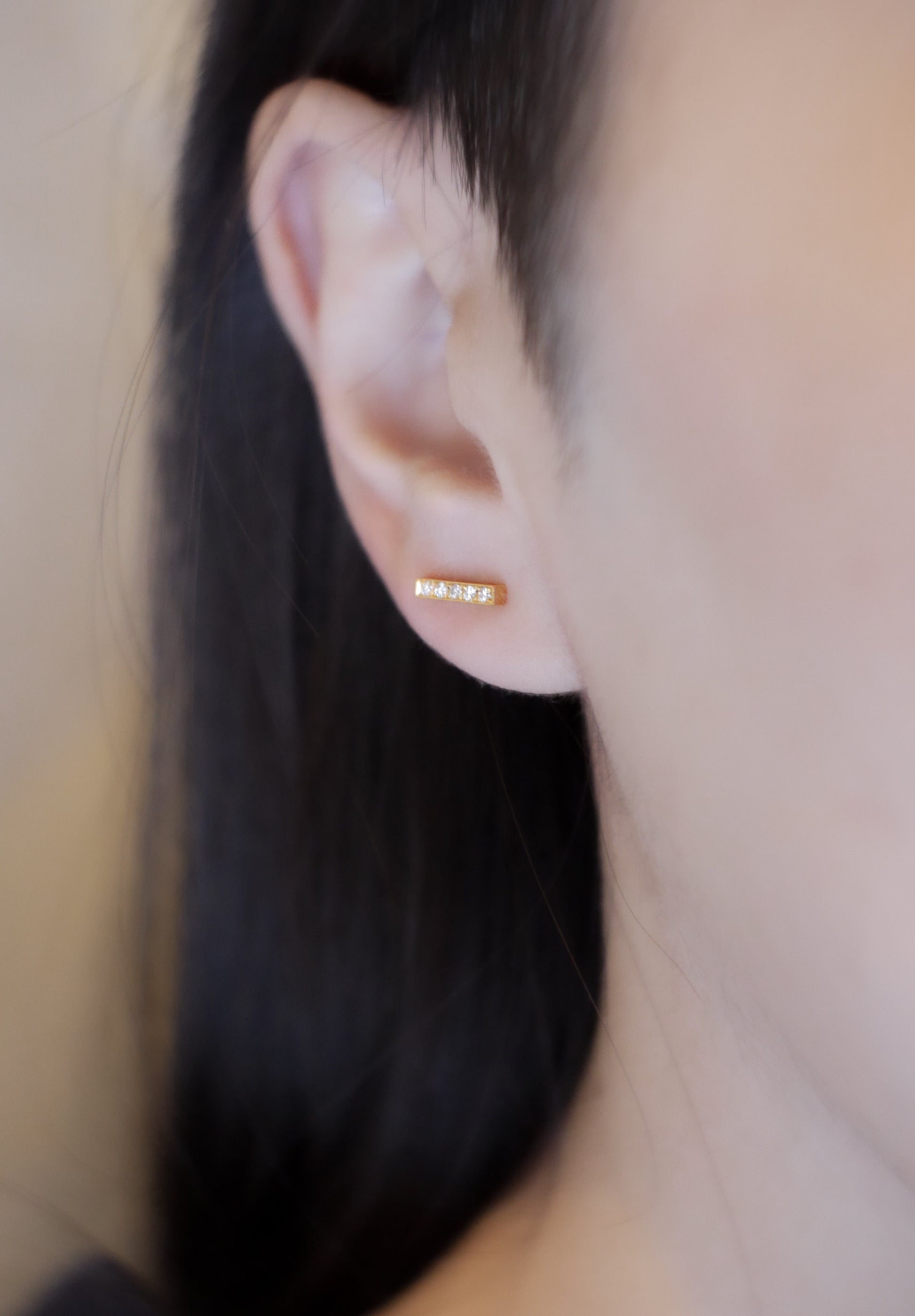 Boucles d'oreilles en diamant à la silhouette minimaliste. Bien qu'il ait un design discret, il présente une ligne droite digne qui le rend adapté à toutes les occasions.