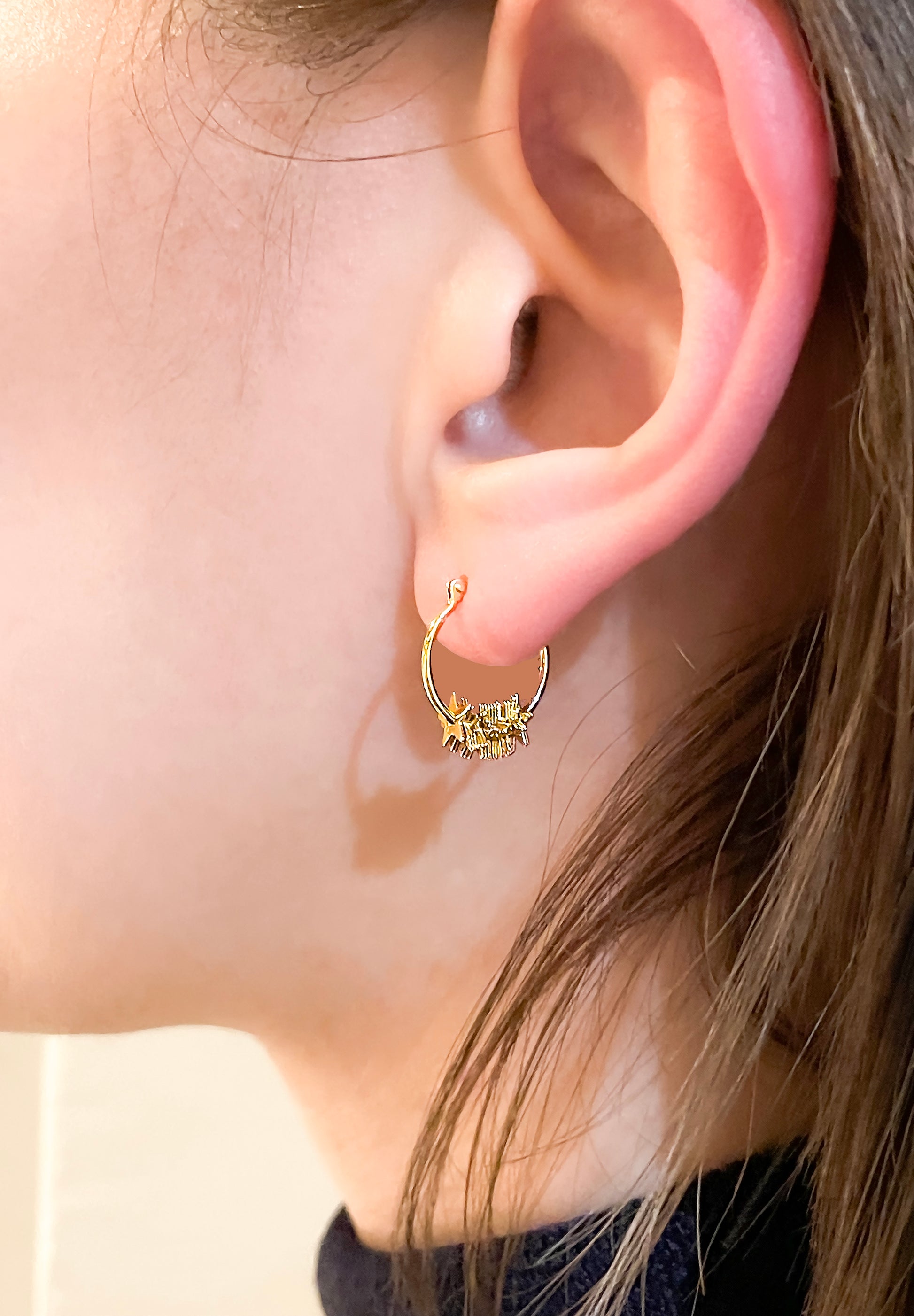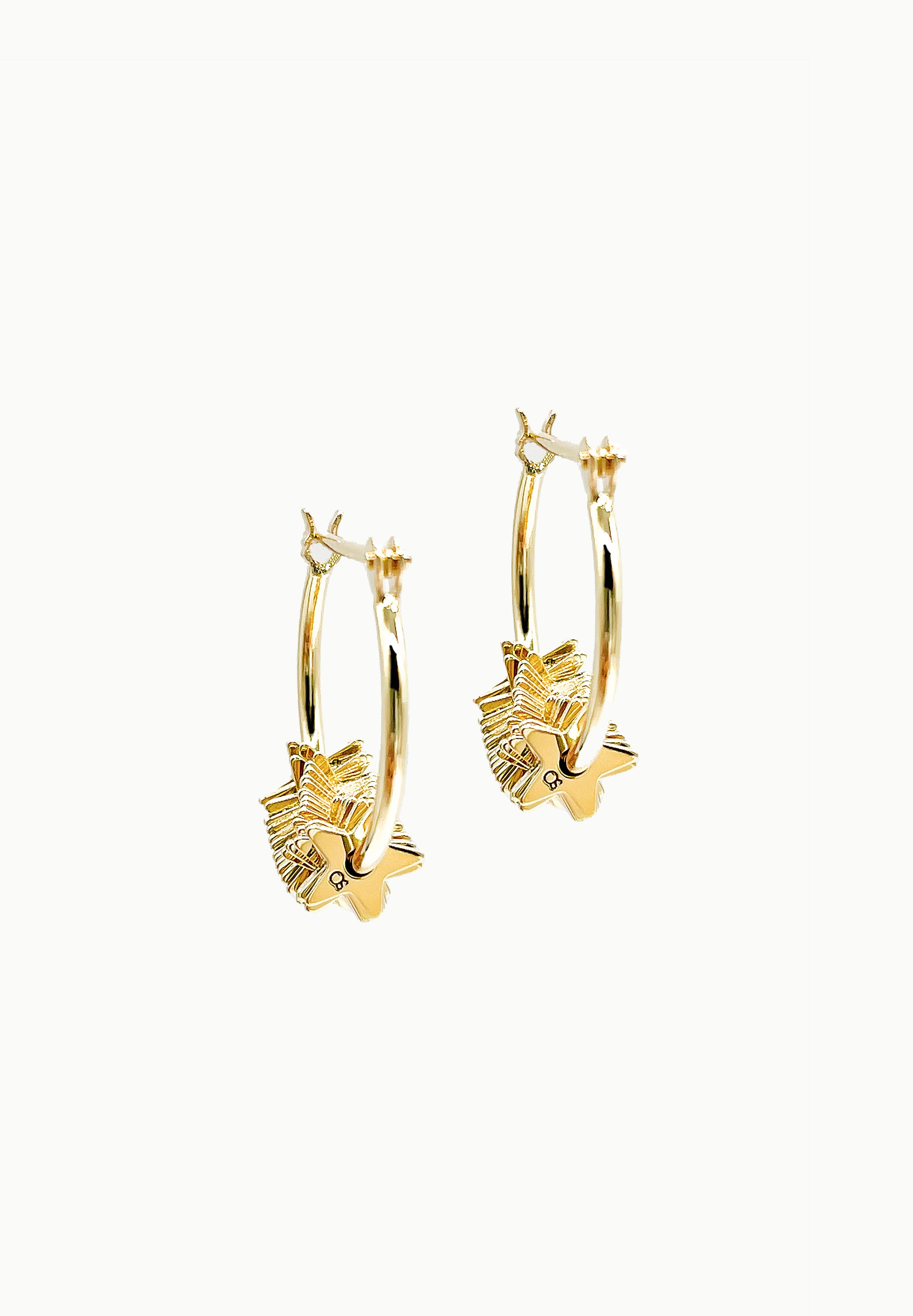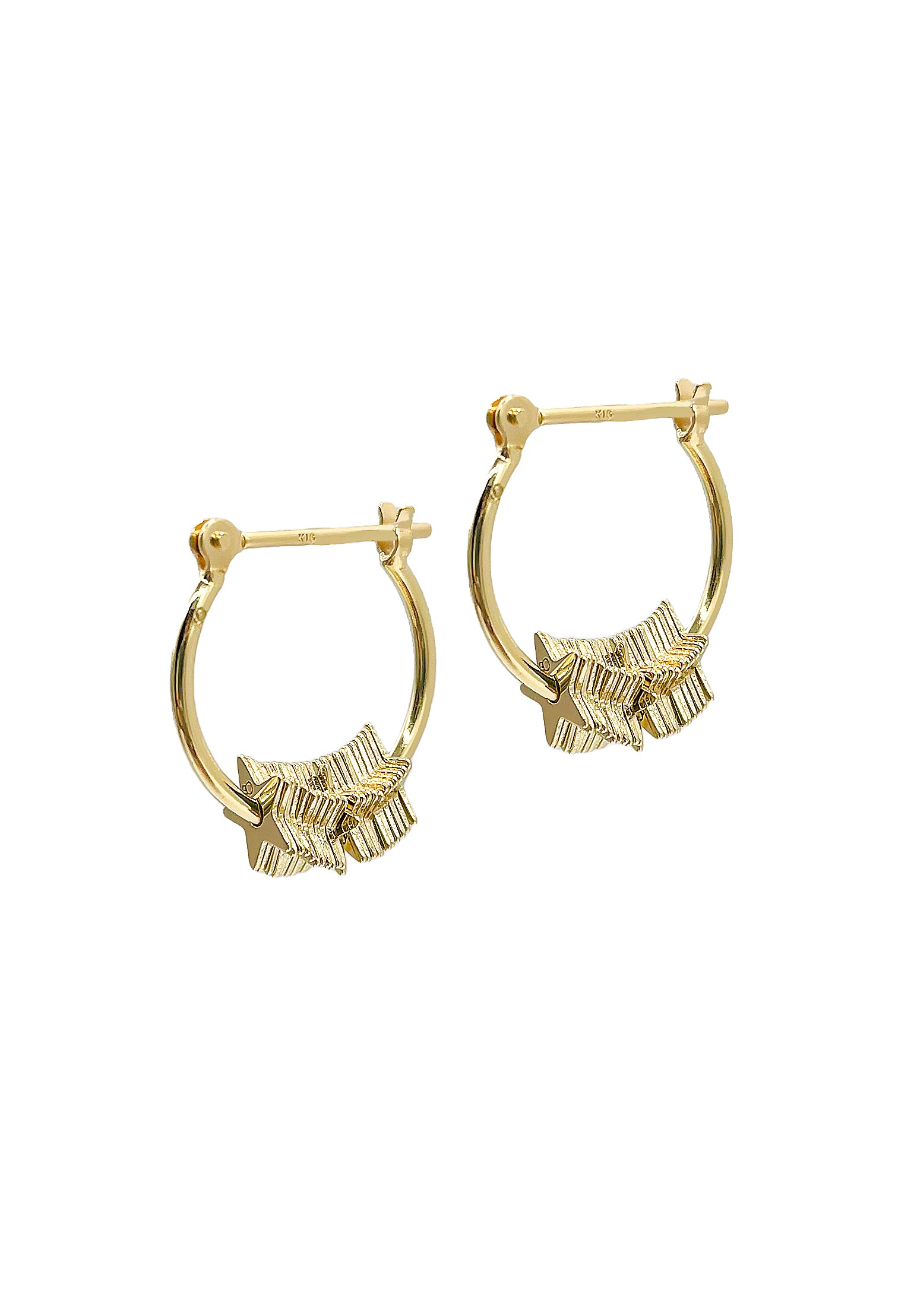 Créoles Stella avec plaques étoiles superposées. Les plaques connectées ressemblent à un seul objet, et pourtant chaque plaque oscille indépendamment. Un objet artistique délicat mais puissant.